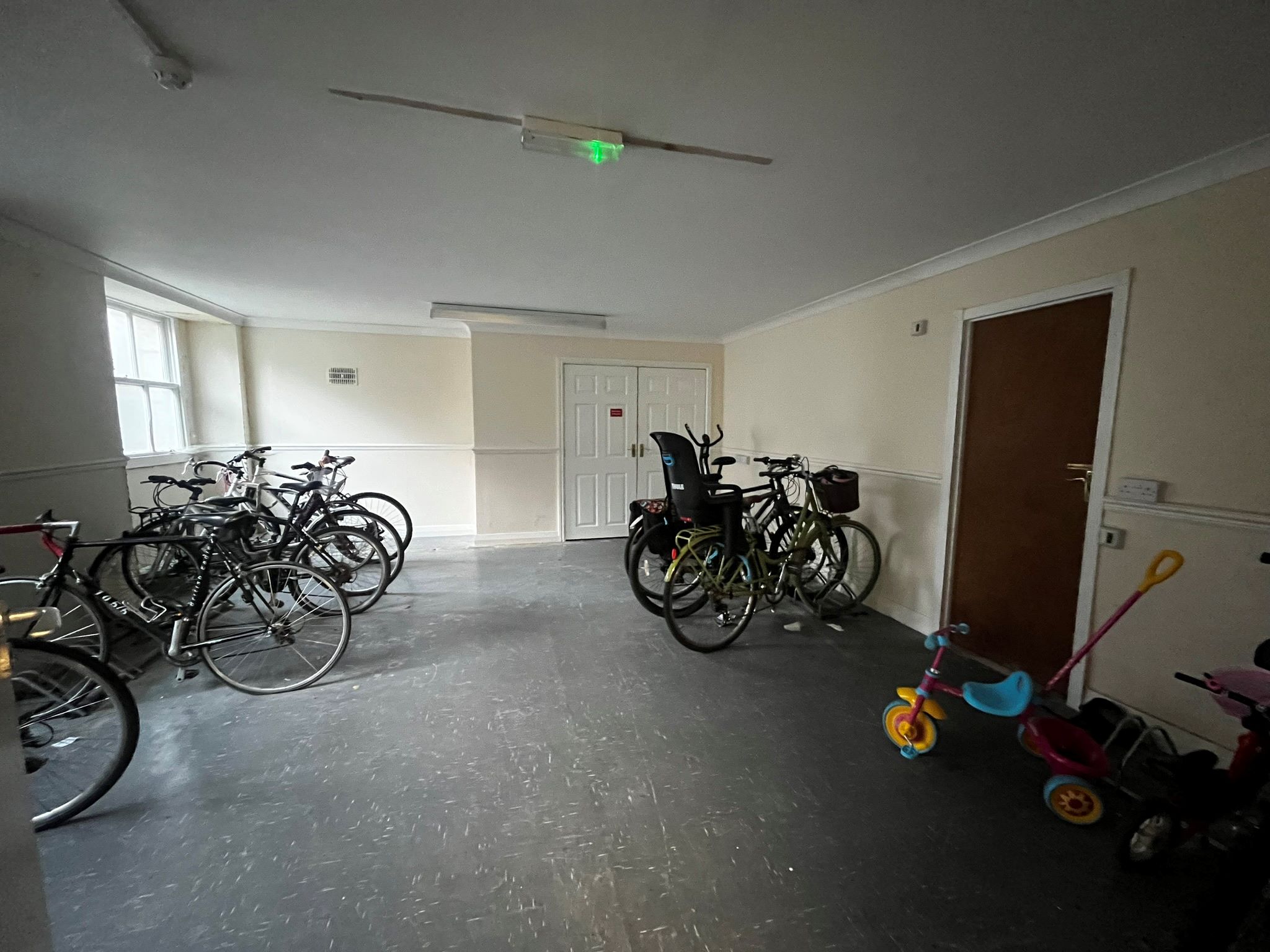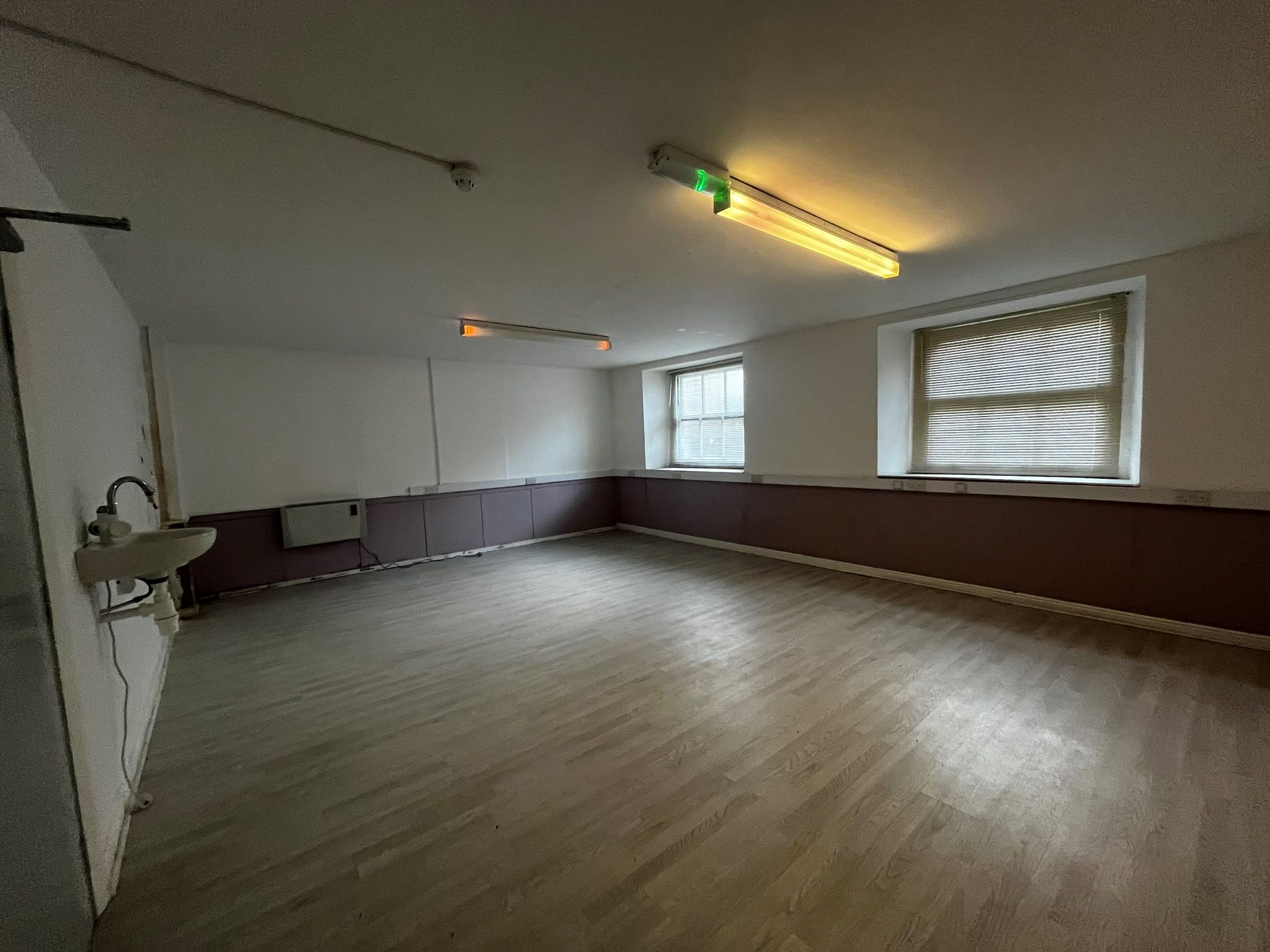 The other entrance door further along the front elevation has its own direct access to the office accommodation. The building retains a number of interesting features with some areas having original York stone flooring. The offices have fluorescent lighting and perimeter electrical trunking to some rooms.