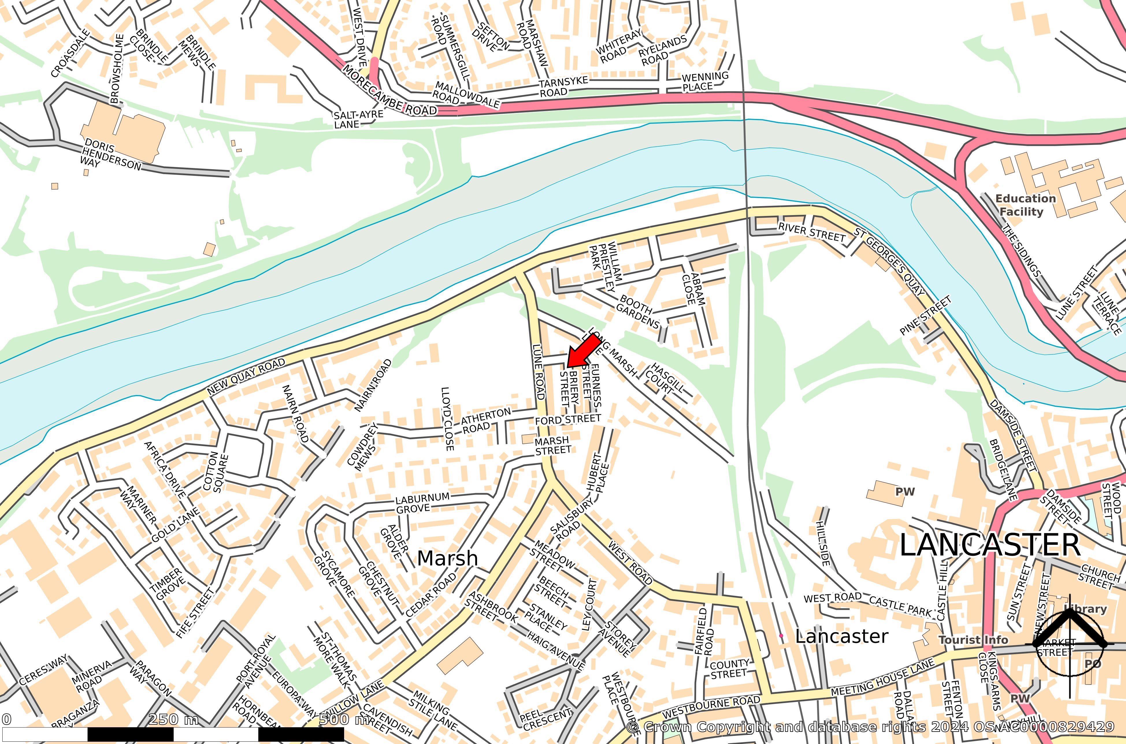 Briery Street is situated near Lancaster Railway Station and the city center, in an area locally known as 'Fairfield.' This is a quieter neighborhood that remains relatively popular with students, particularly mature students and young professionals. The surrounding area consists mainly of terraced and semi-detached houses, with Lancaster City Football Club located just to the east. There are regular bus services running south to the Lancaster University campus, including stops at the University Underpass.