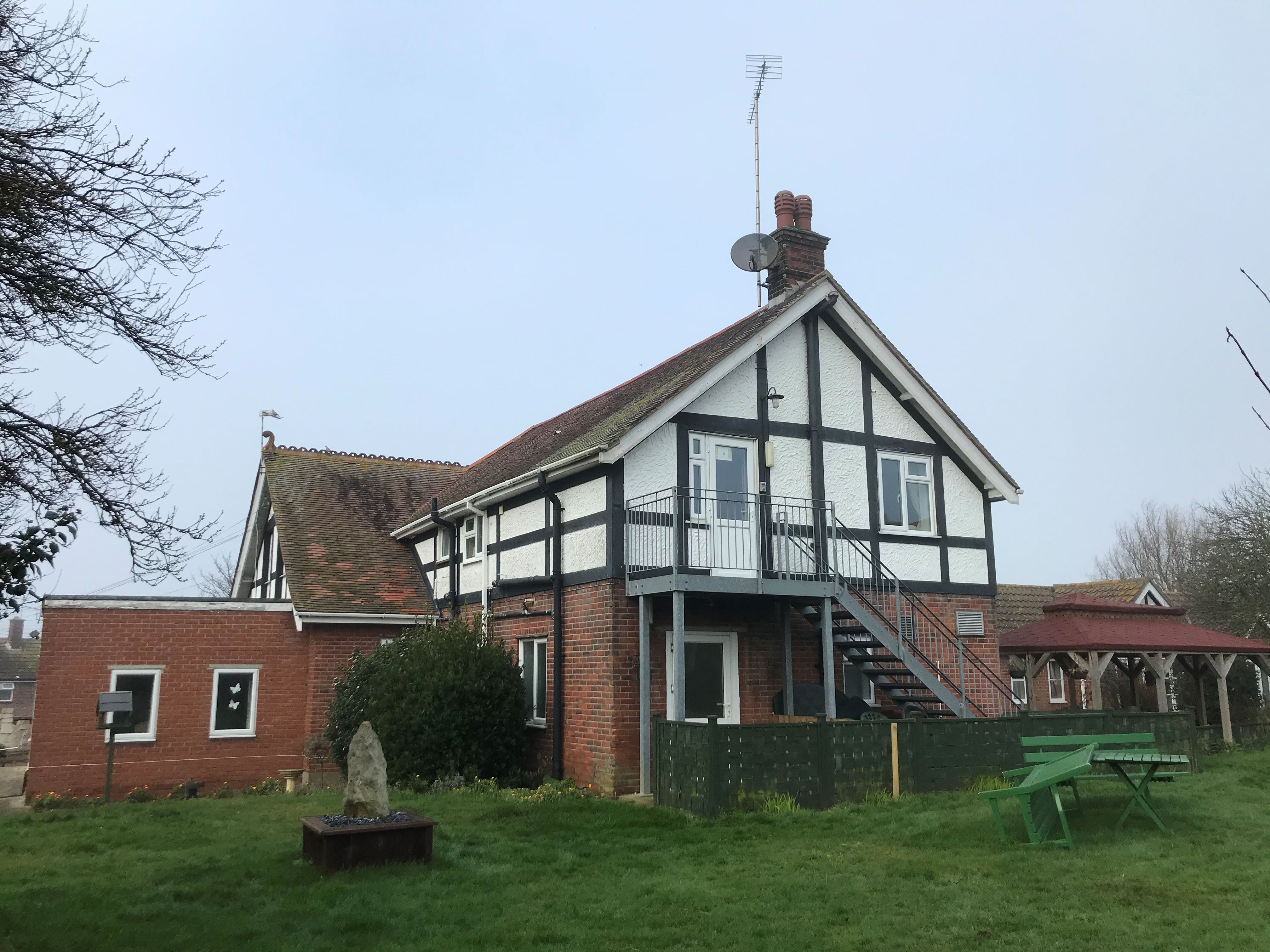 Externally there is a car park with space for 10 cars to the front which is laid to concrete, with a rear garden laid to lawn and a seating area on a patio beneath a wooden canopy.