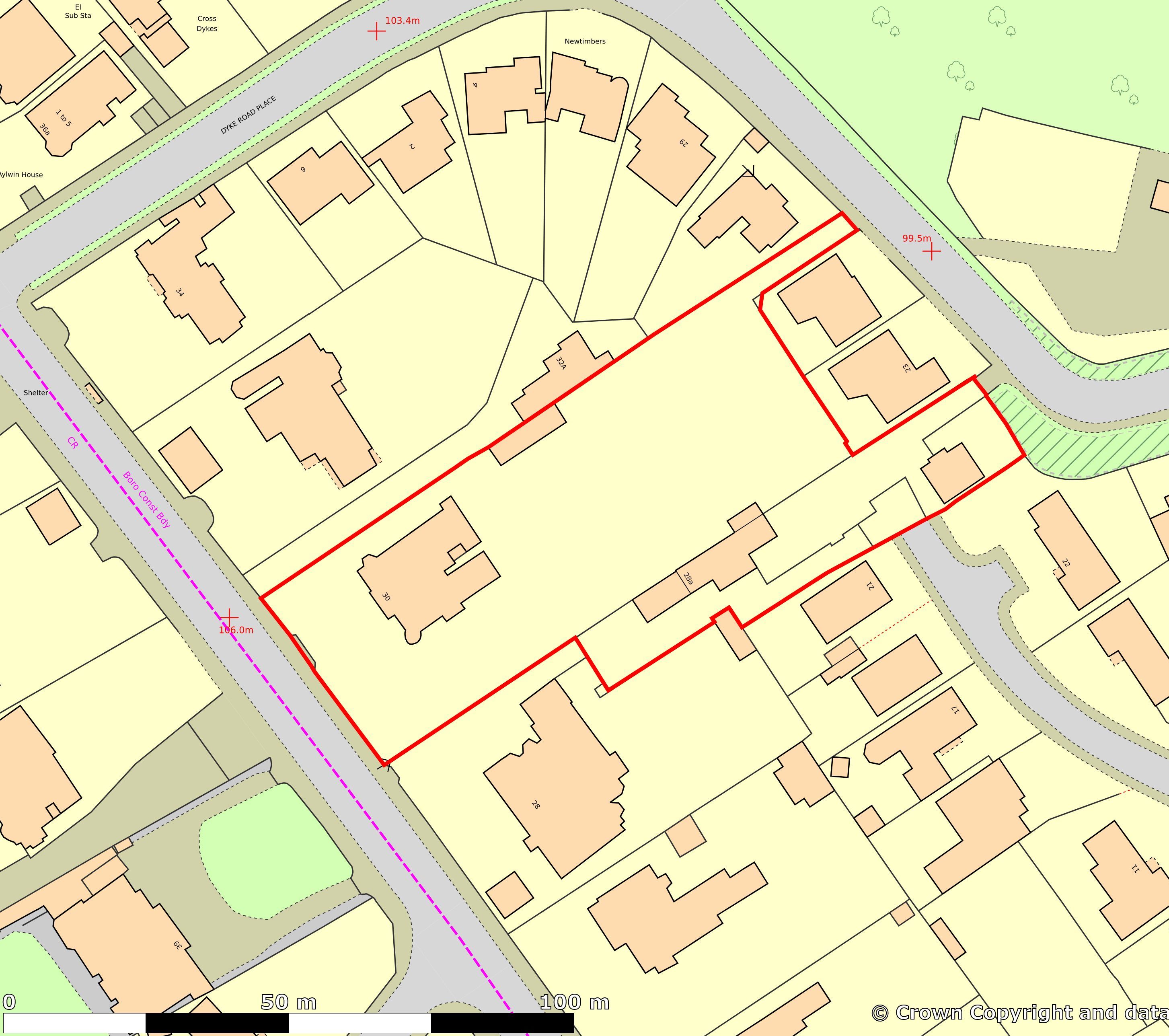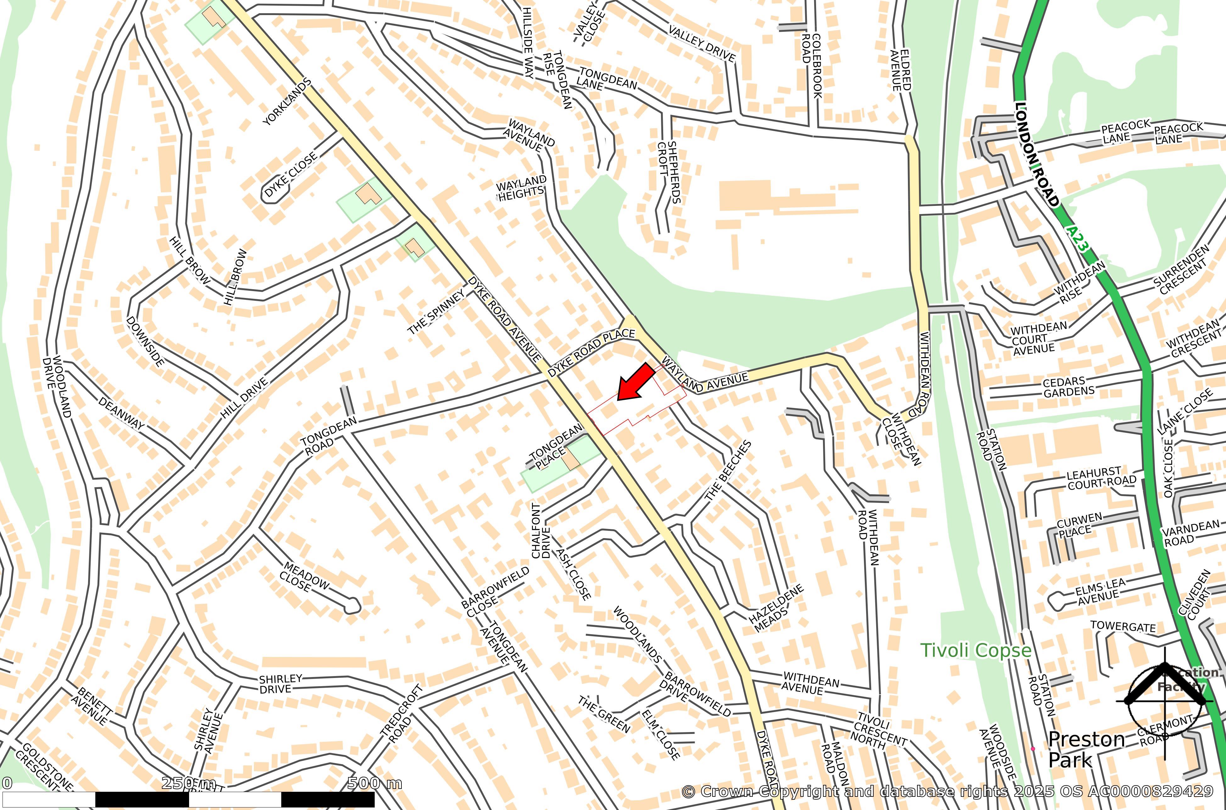 The property features a wide frontage to Dyke Road Avenue, with an additional access point located at The Beeches.