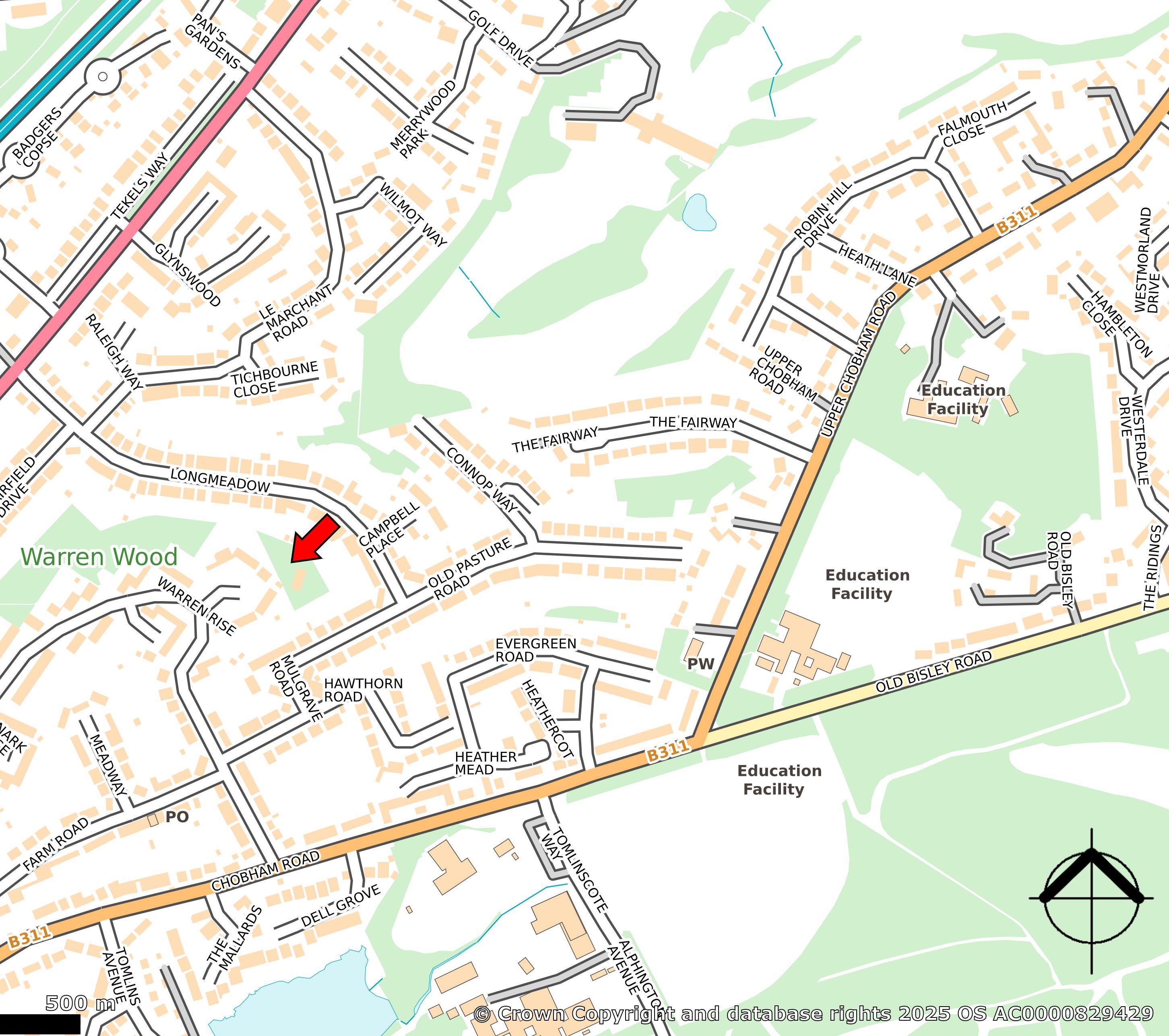 The closest railway station is Camberley Station, approximately 1 mile to the northwest, offering regular services to London Waterloo with an average journey time of around 60 minutes. The M3 motorway is located approximately 2 miles to the east, accessible via Junction 4, providing convenient road links to London and the wider Southeast region.