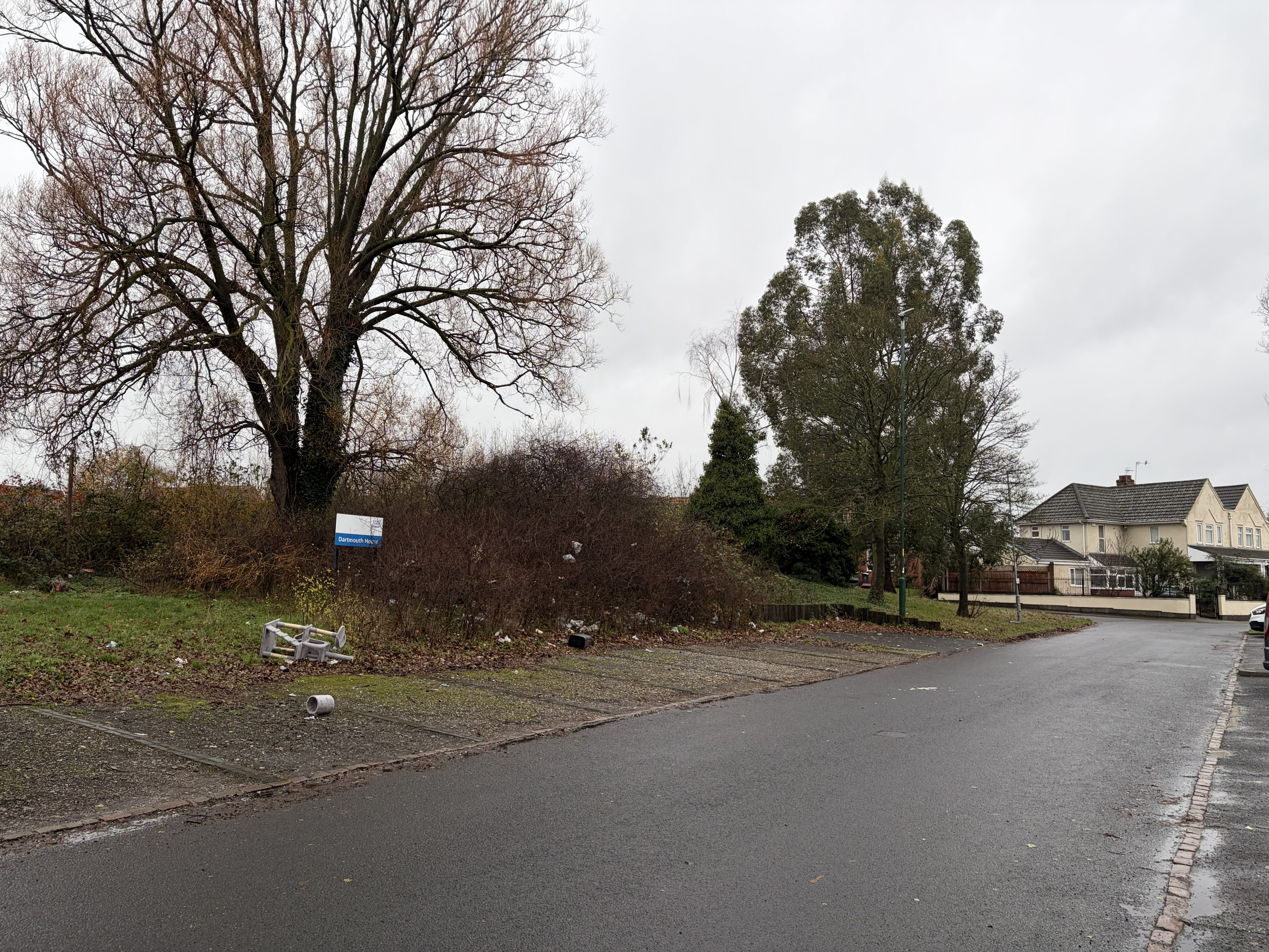 The former Dartmouth House site extends to approximately 0.517 hectares (1.277 acres) and comprises previously developed land that formerly accommodated an NHS rehabilitation centre with building heights ranging from one-to-two storeys, demolished between 2013 and 2016. Positioned at the heart of Ryecroft Place, the site is now an open area predominantly covered with vegetation, with three small hardstanding sections along the boundary currently used for car parking. The plot is enclosed on three sides by single storey residential properties.