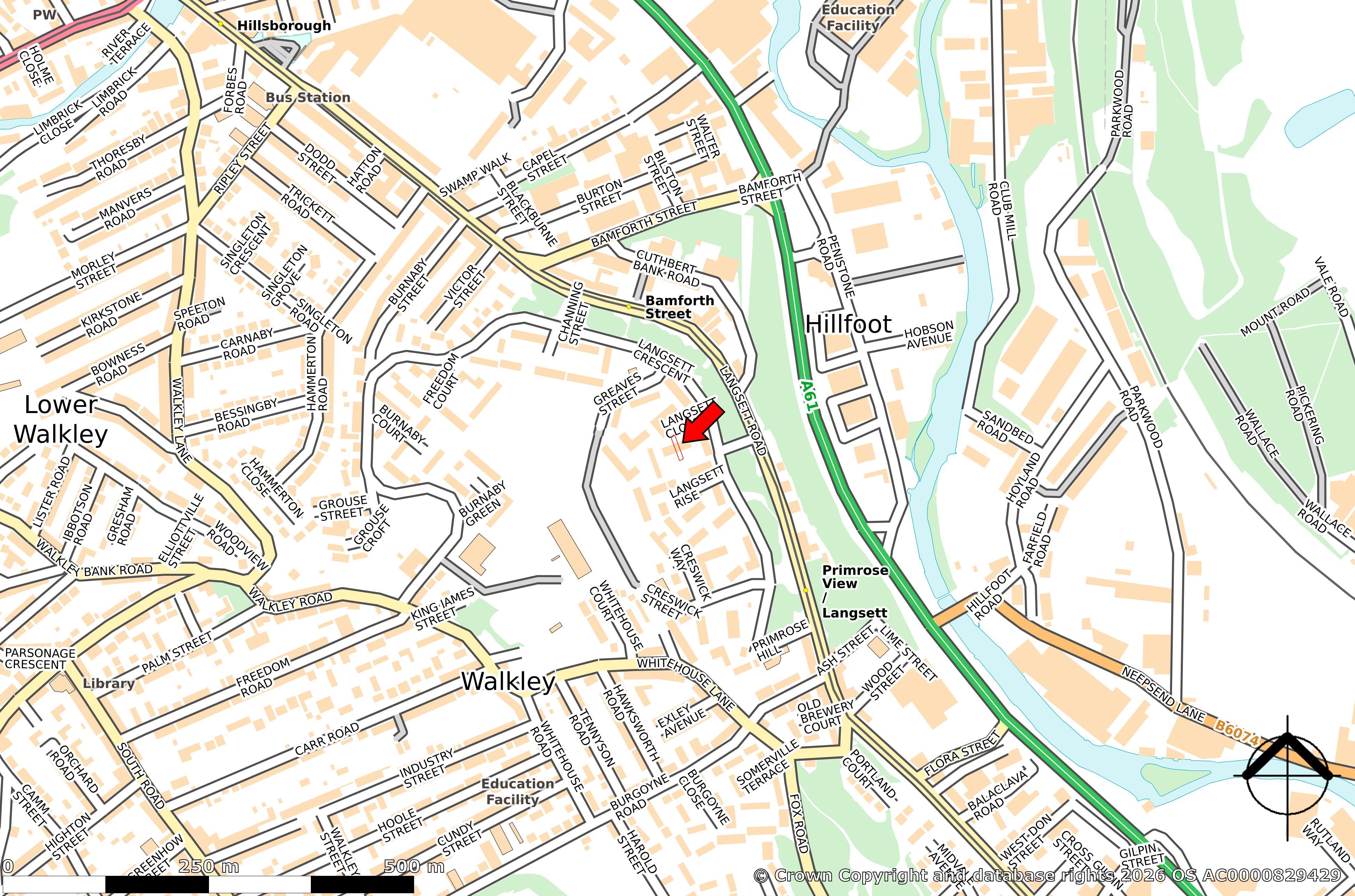 The property is situated within a quiet cul‑de‑sac off Langsett Road in the established Walkley area of Sheffield. Langsett Road provides access to the Supertram network, with the nearest stop a short walk away, offering regular services into Sheffield City Centre, Sheffield University and Hillsborough.