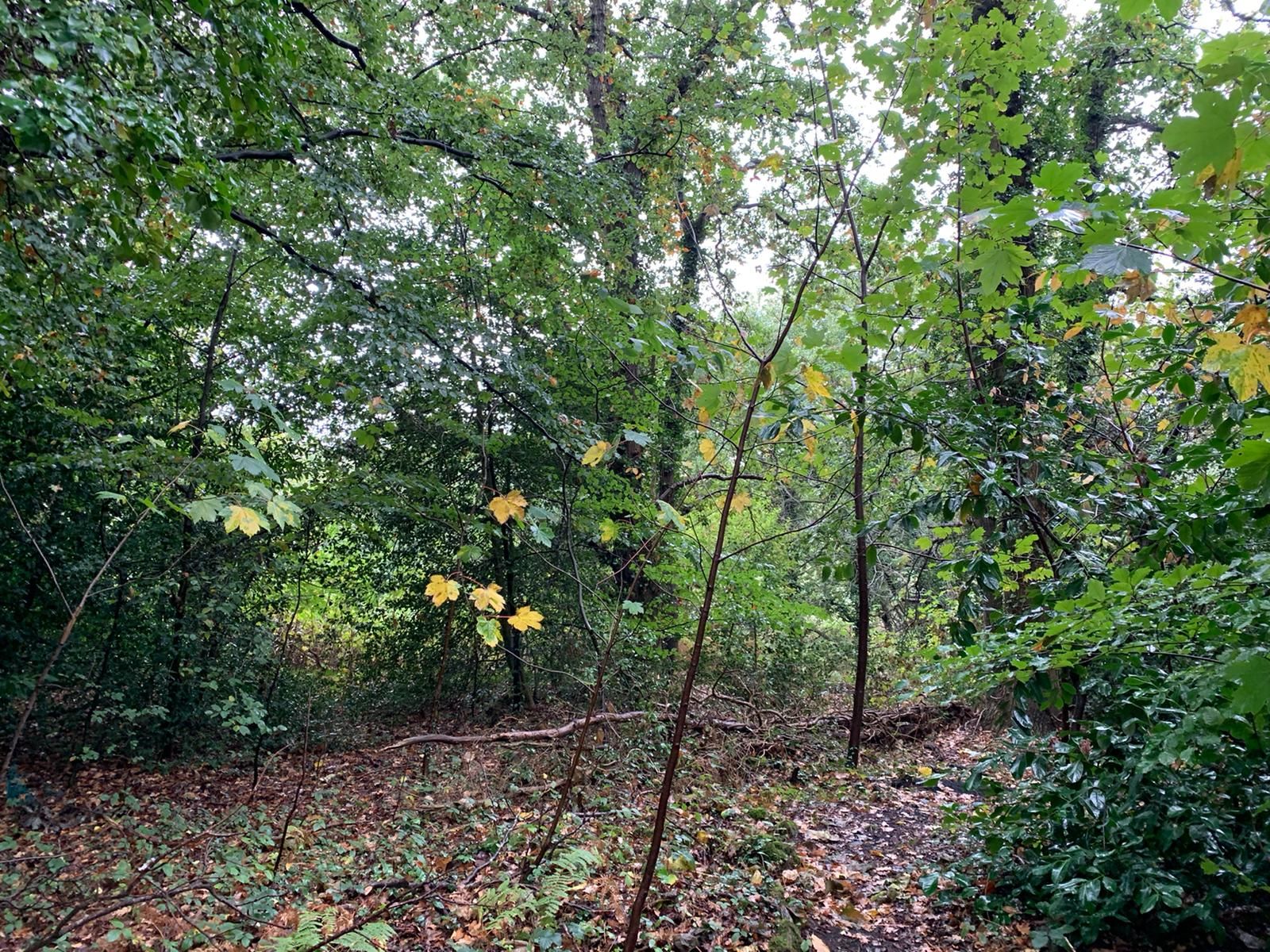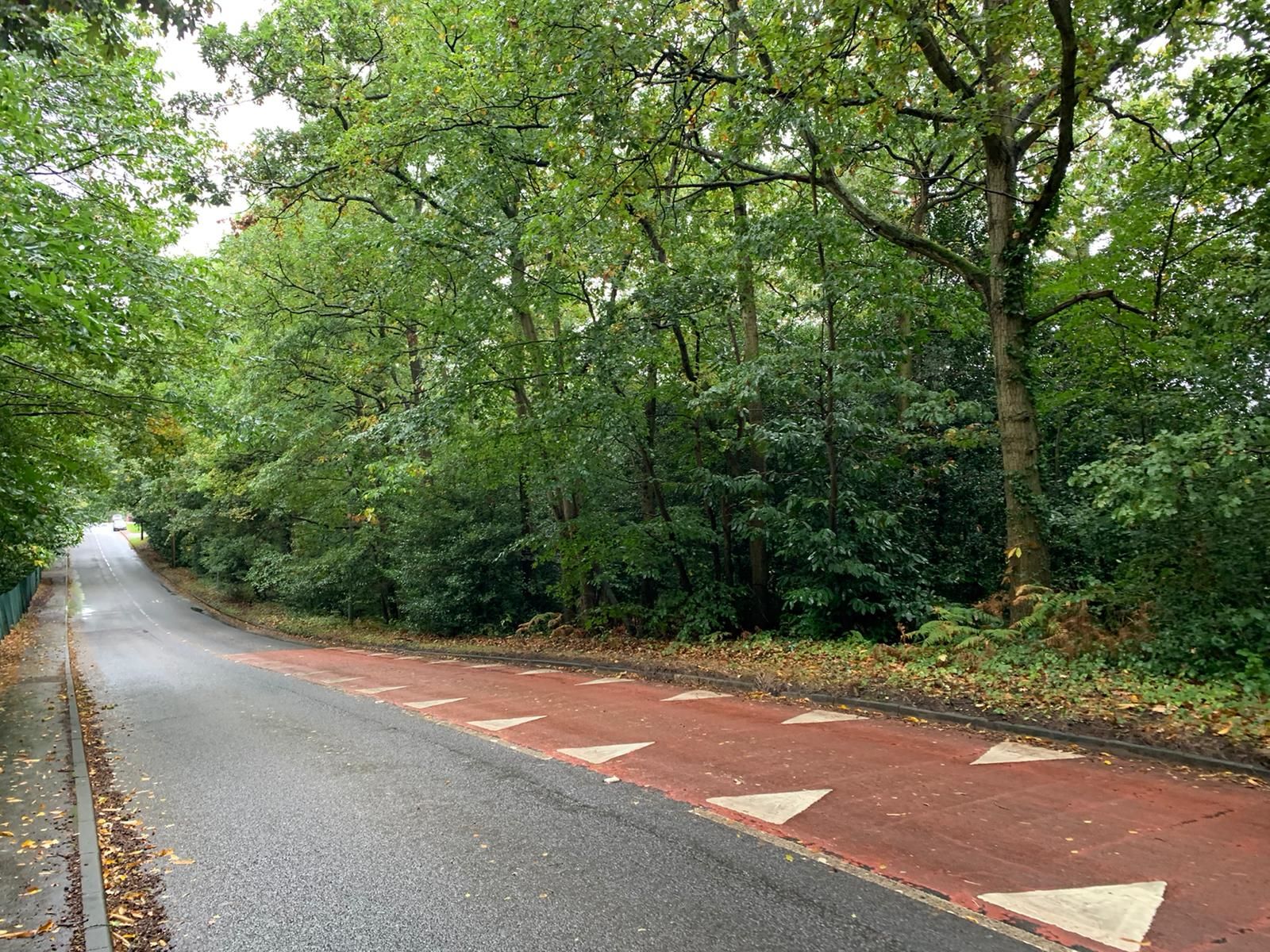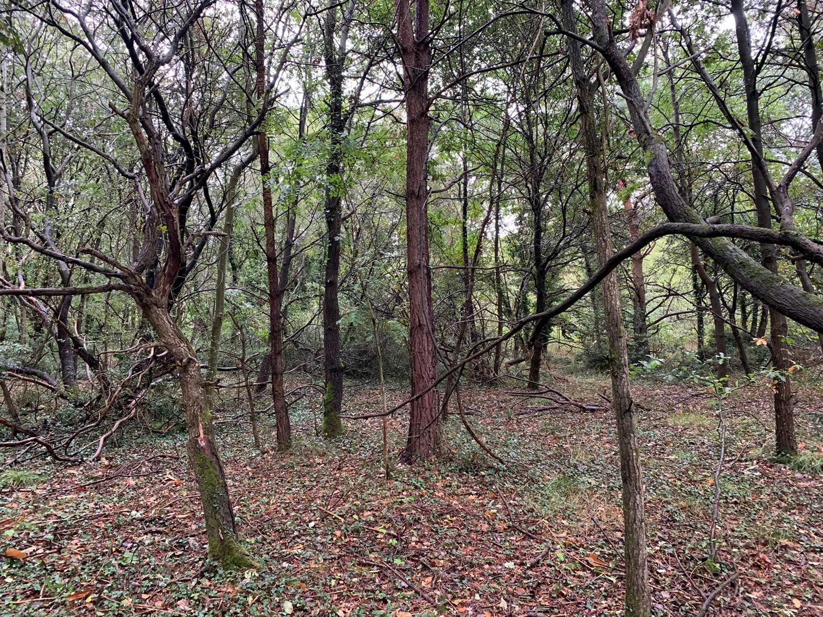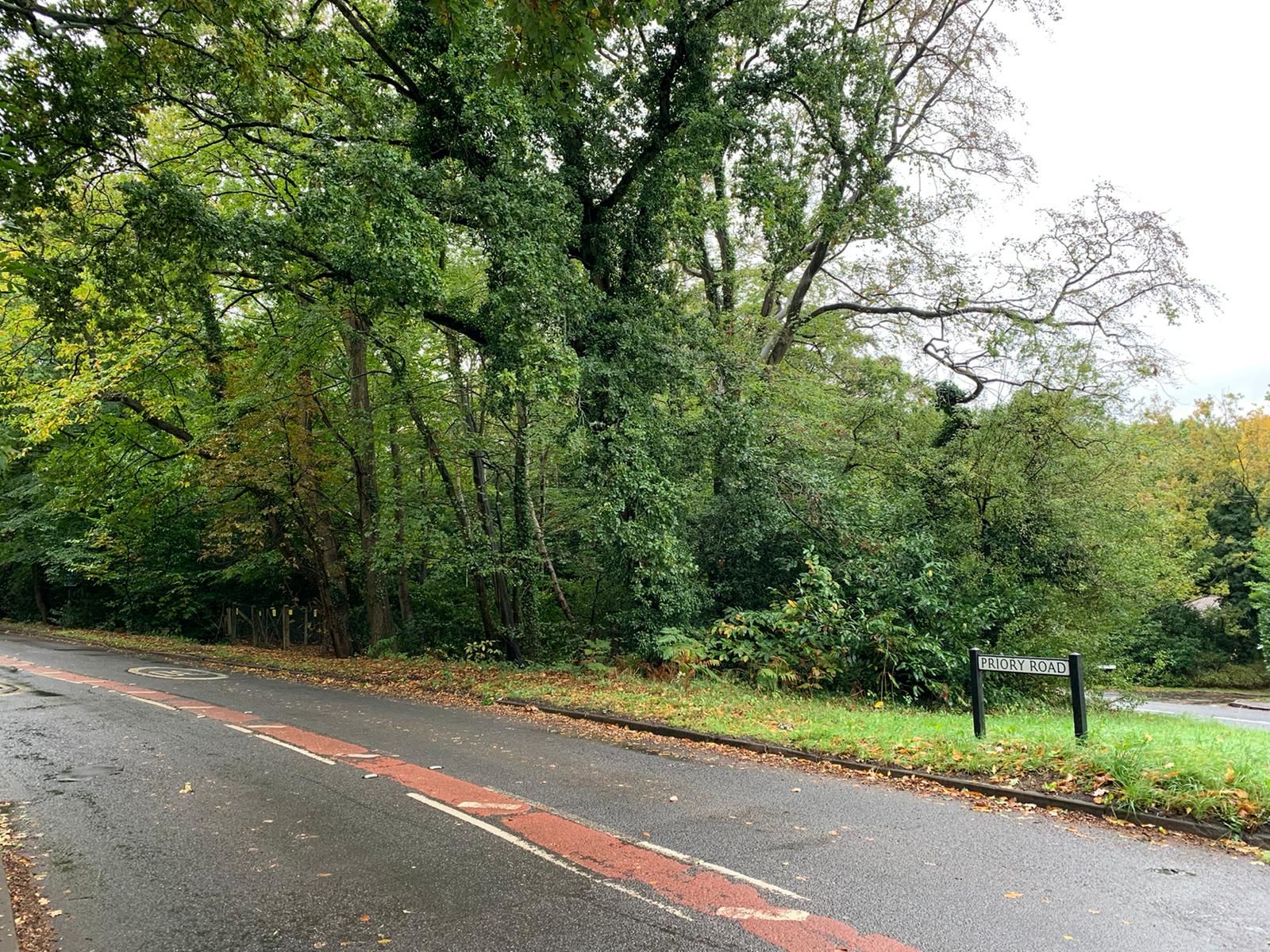 The land is bordered by Priory Road, Long Hill Road and North Road and is predominantly covered by trees.