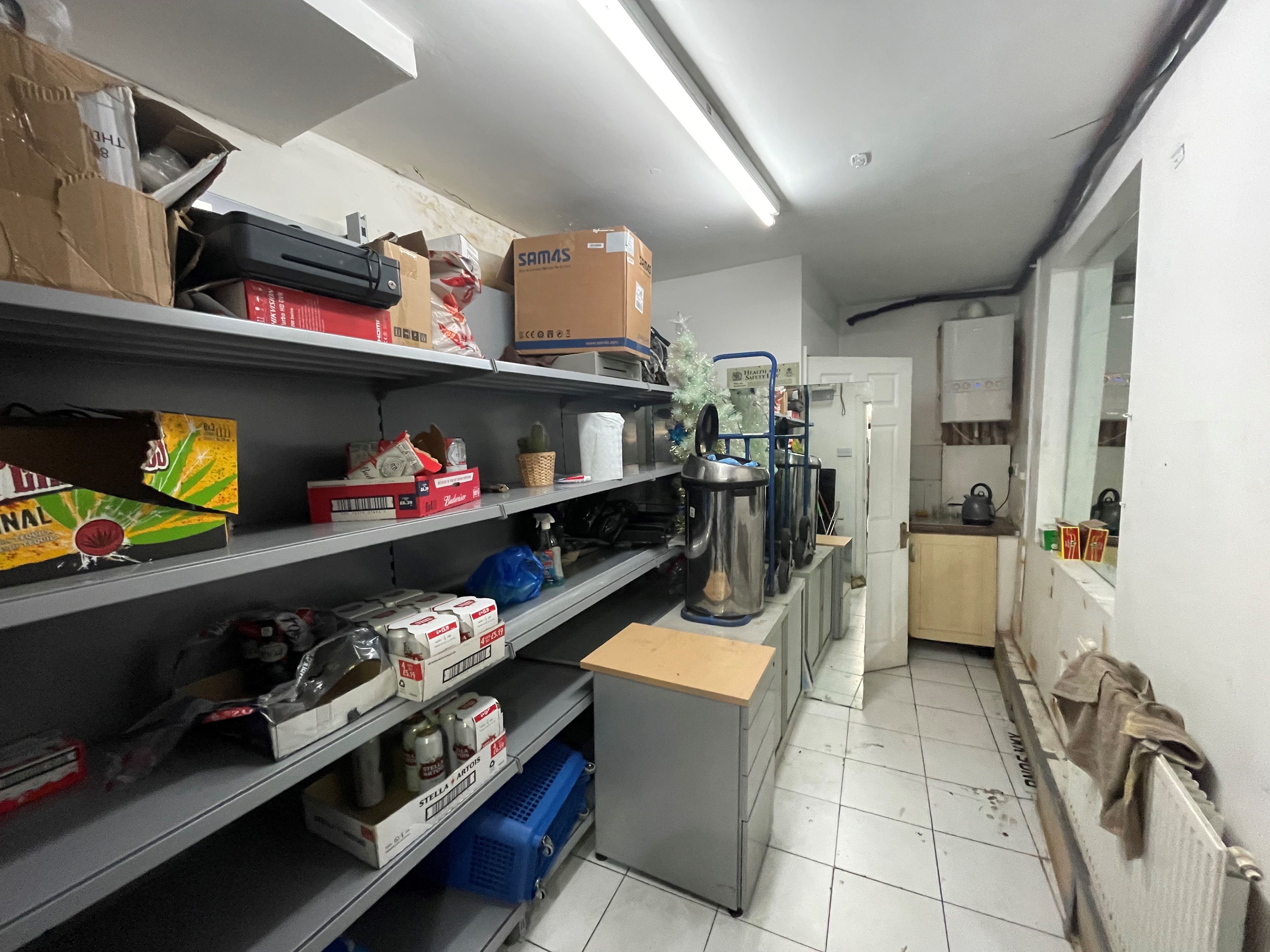 The ground floor, currently used as an off license, comprises a sales area to the front, fitted with standard shelving. There is a storage room to the rear and a WC. The total area of the ground floor is 513 sq ft (47.64 sq m)*