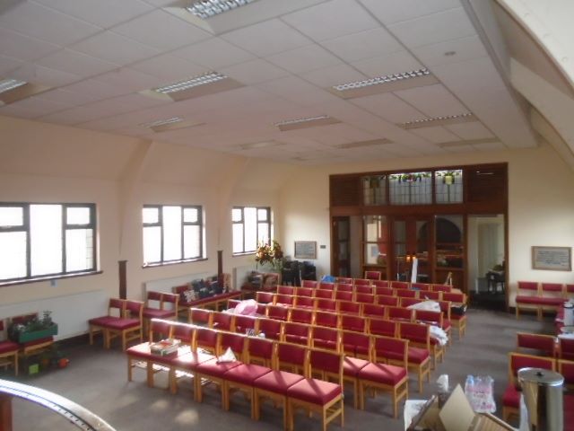 The main church congregation hall is at ground floor level with access via steps and a ramp to the front, with offices and ancillary rooms to the rear. The lower ground floor provides two halls and a kitchen.