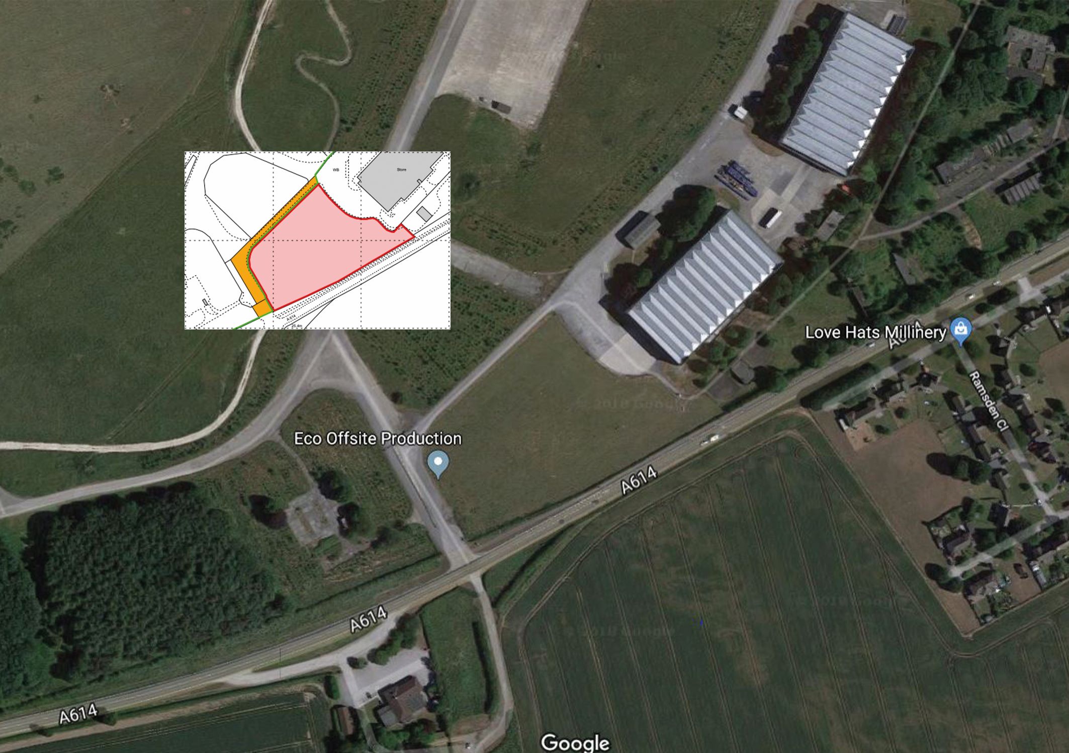 The land is accessed from the A614 at the southern boundary and benefits from prominent frontage onto the same. The site is currently open grass covered land with a roughly level topography.